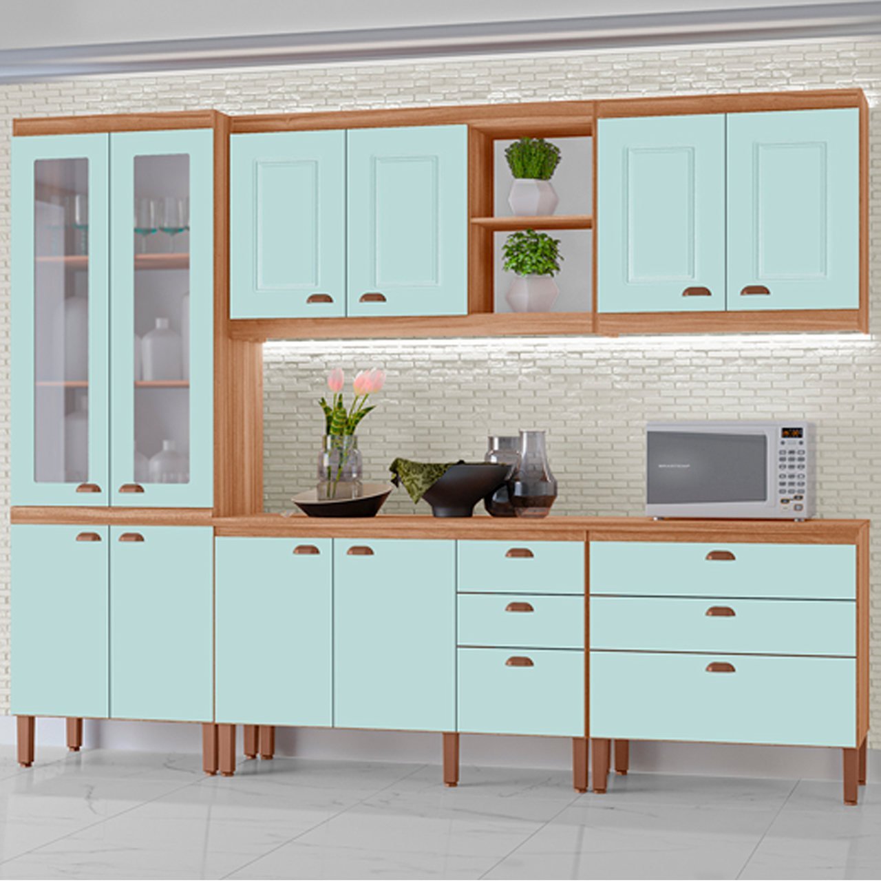 Cozinha Completa Modulada Jessica 100% MDF com 2 Balcões Independentes 10 Portas e 6 Gavetas Tuboarte