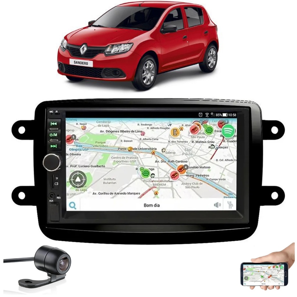 Central Multimidia Renault Sandero 2012 2013 2014 2015 2016 2017 2018 2019 2020 Mp5 2 din Espelhamento Moldura Câmera de Ré