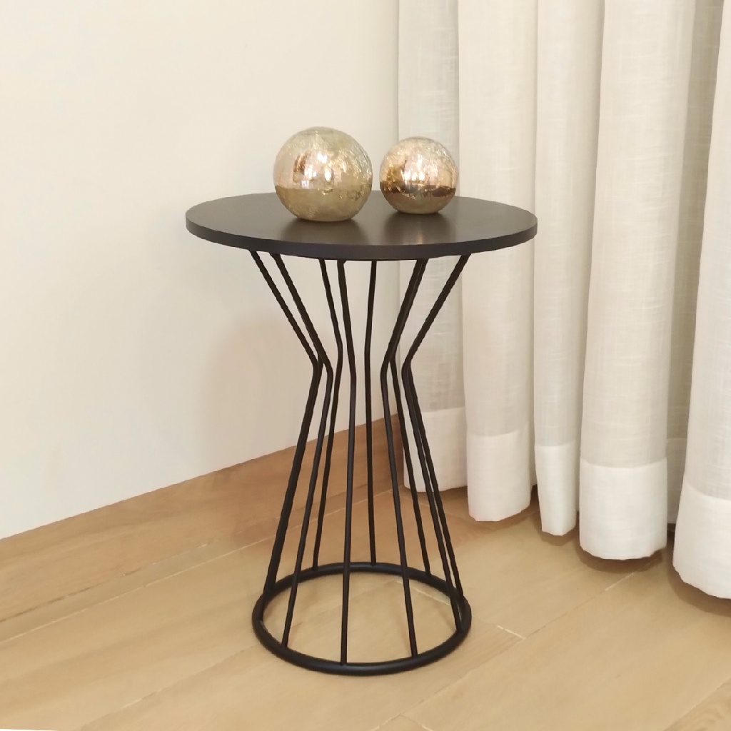 Mesa Redonda De Canto Lateral Sala Base Em Ferro Industrial