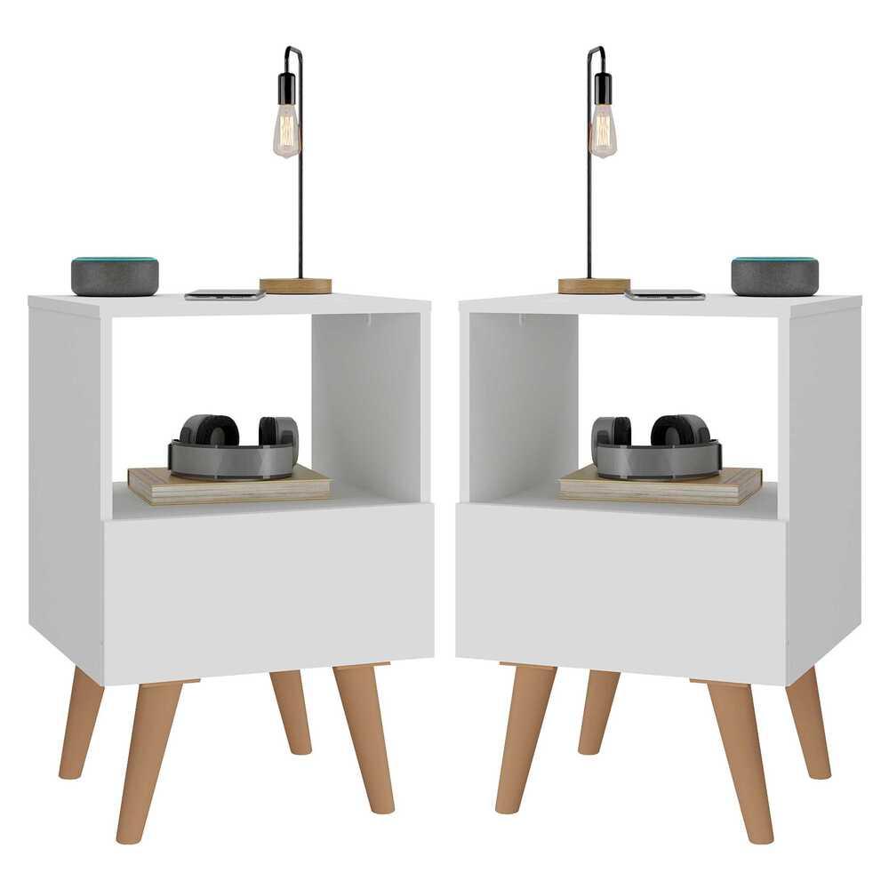 Kit 2 Mesas de Cabeceira Mesinhas Quarto Com Nicho e Gavetas Retrô Dream Plus - Branco - Lojas RPM - RPM Móveis