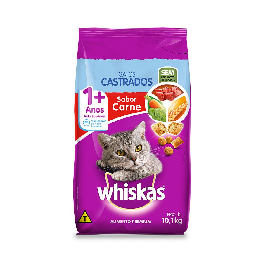 Ração Whiskas para Gatos Castrados Sabor Carne Leve 10,1kg Pague 9kg