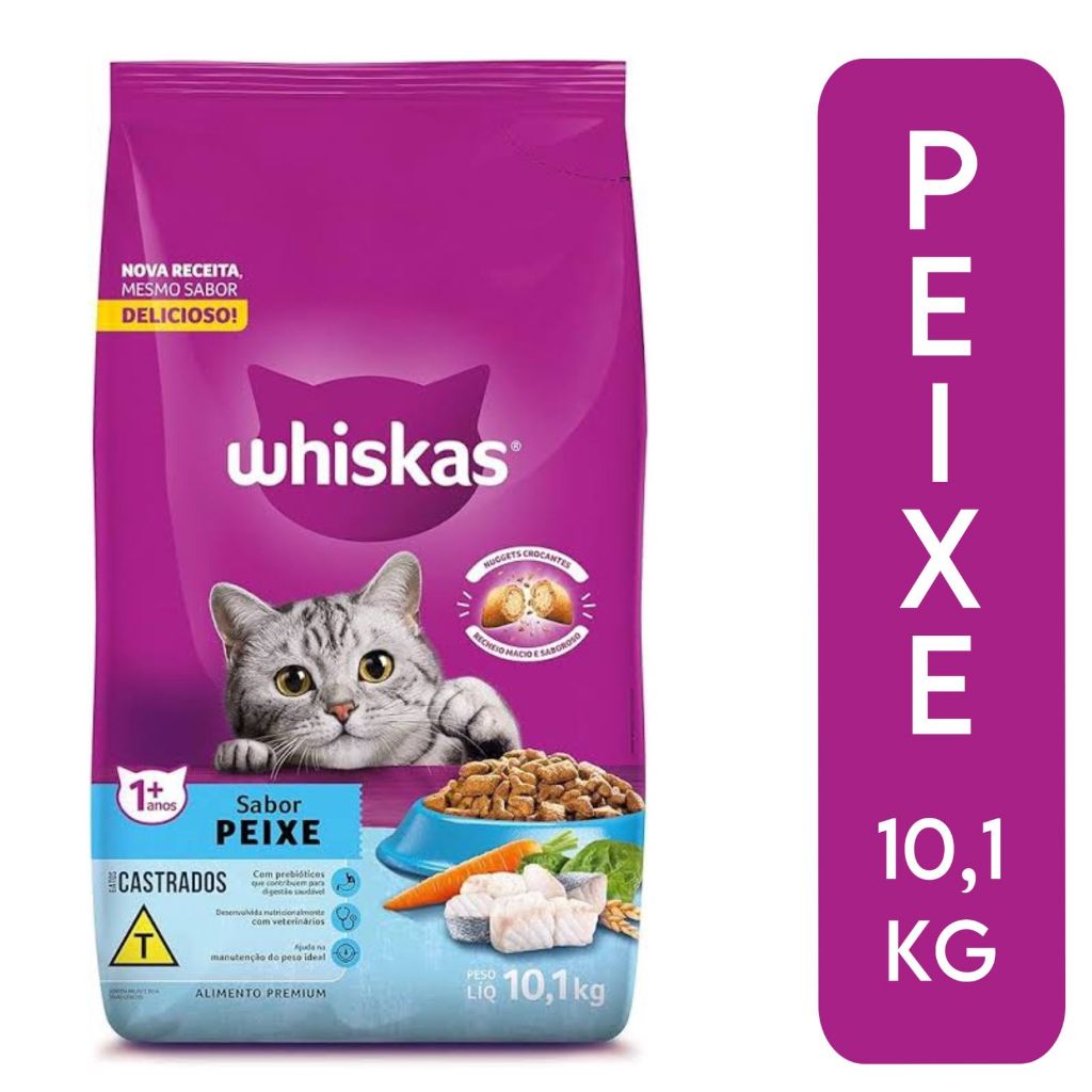 Ração Whiskas Premium Para Gatos Adultos Castrados Sabor Peixe - 10,1kg Validade Mês 06/2025