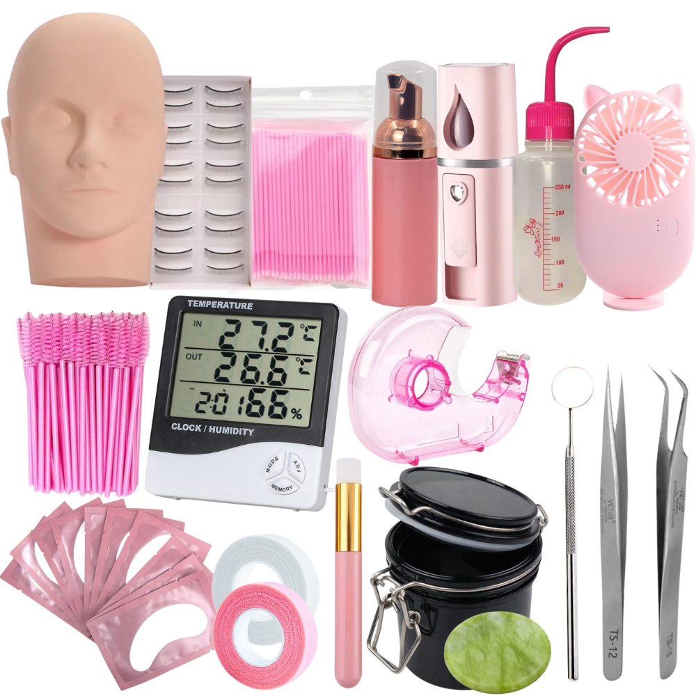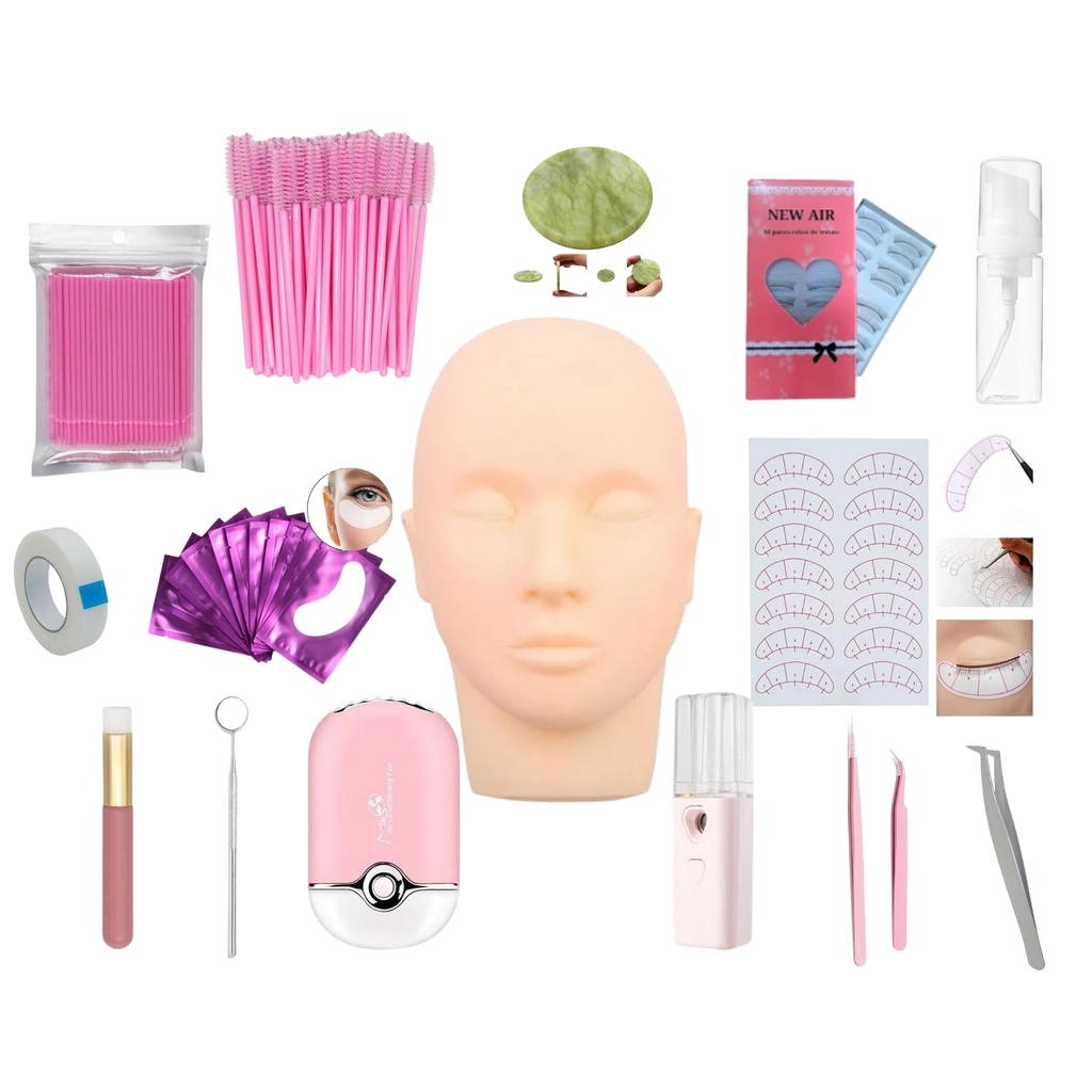 Kit Completo Iniciante Treino Extensão e Alongamento Cílios Ventilador Nano Spray Pinça Vetus Pisseta Pump