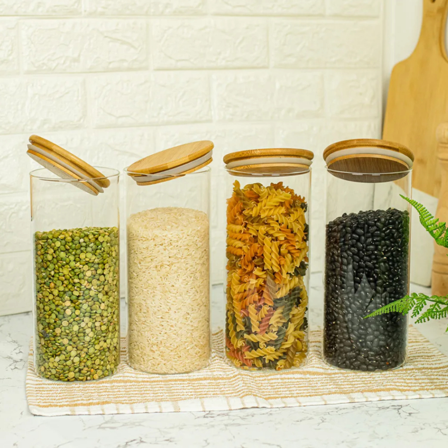 Kit 4 Potes Herméticos De Vidro 1200ml Com Tampa De Bambu Pote Hermético Vedação Silicone Mantimento