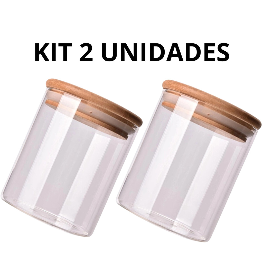 Pote de Vidro com Tampa de Bambu Kit 2 Peças Hermética para Mantimentos Alimentos