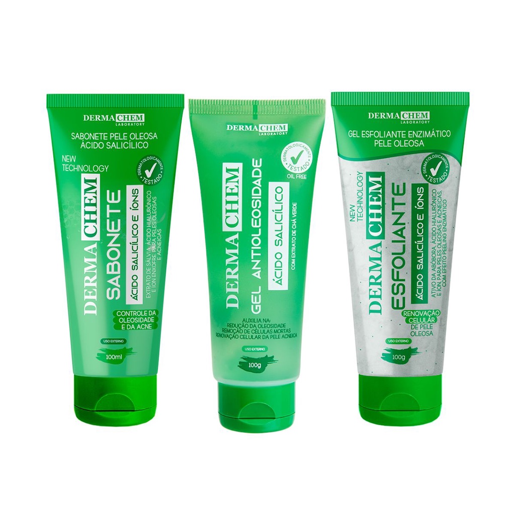 Kit Skin Care Sabonete Facial Pele Oleosa + Gel Antioleosidade + Esfoliante Ácido Salicílico