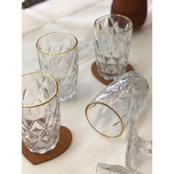 Conj. 6 Copos Alto Vidro Diamond c/ Fio de Ouro 350ml Lyor