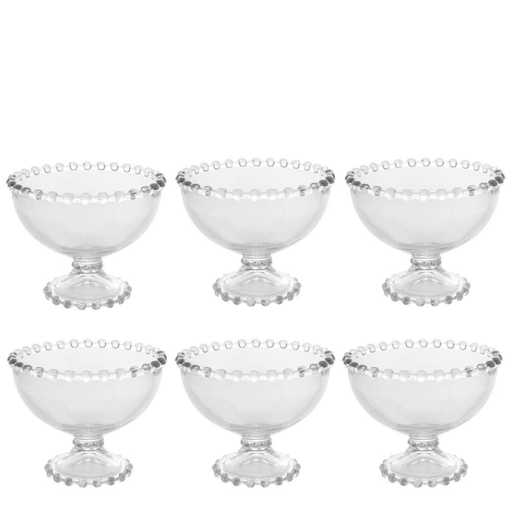 Conj. 6 Taças Sobremesa de Cristal Pearl Bolinhas Transparente 11x9cm 250ml Wolff
