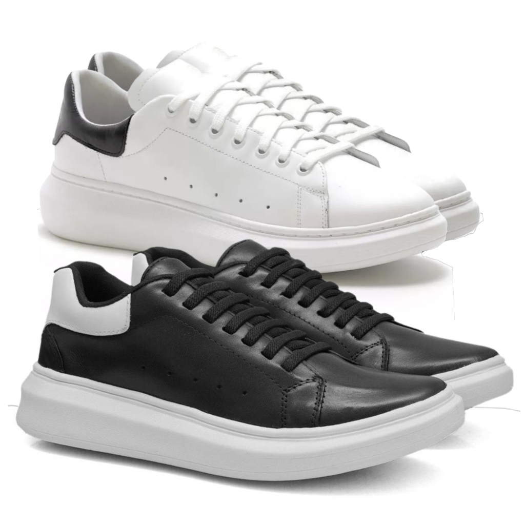 Kit 2 Pares de Sapatenis Tenis Casual Masculino Couro Legitimo Confortável