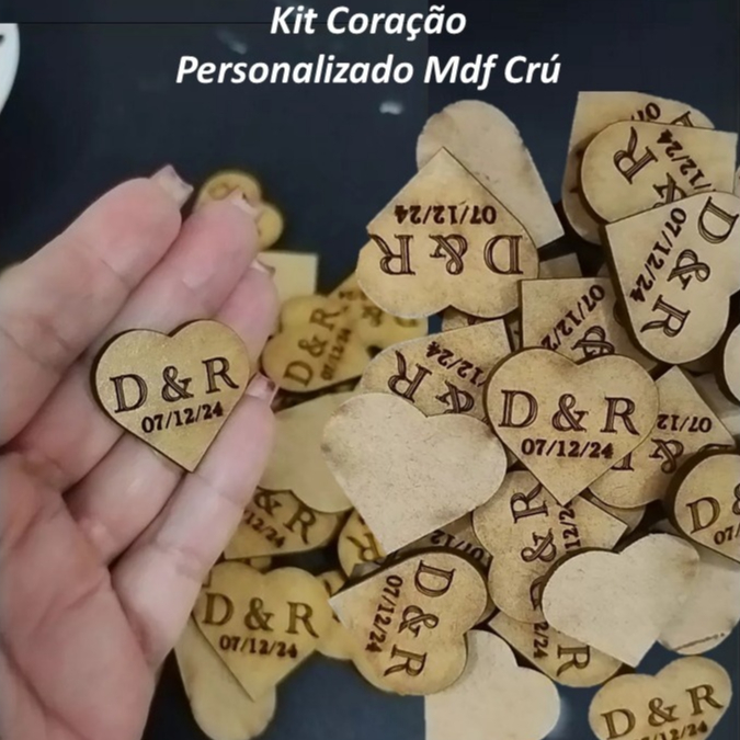 Kit Coração Personalizado Iniciais Nomes Mdf Crú Corte à Laser Sem Furo Lembrança Data Casamento Noivado Batizado 3,0cm