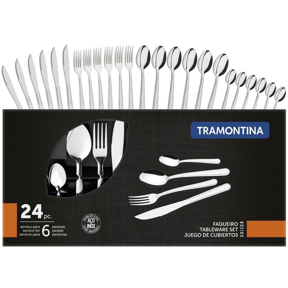 Faqueiro 24 Peças Tramontina Malibu em Aço Inox com Alto Brilho