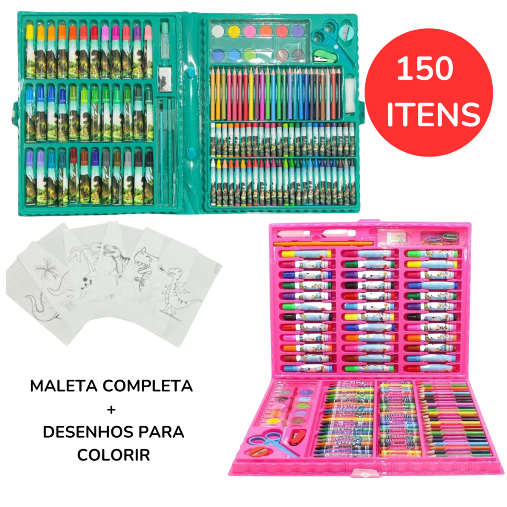 Maleta De Pintura Infantil Estojo 150 68 48 24 e 86 Peças Para Colorir Kit de Desenhar Canetinhas Meninas Unicórnio Carros Dinossauro