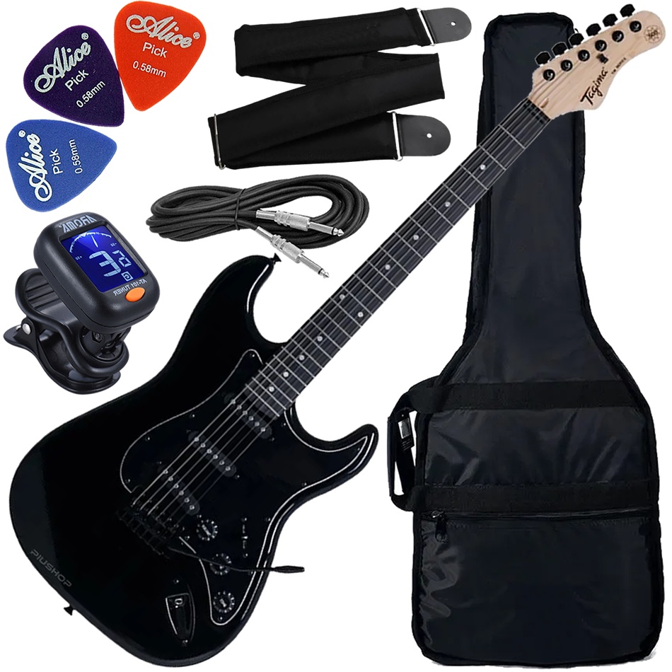 Kit Guitarra Elétrica Strato Tagima Woodstock Tg-500 Classic Bk Preta Gx01