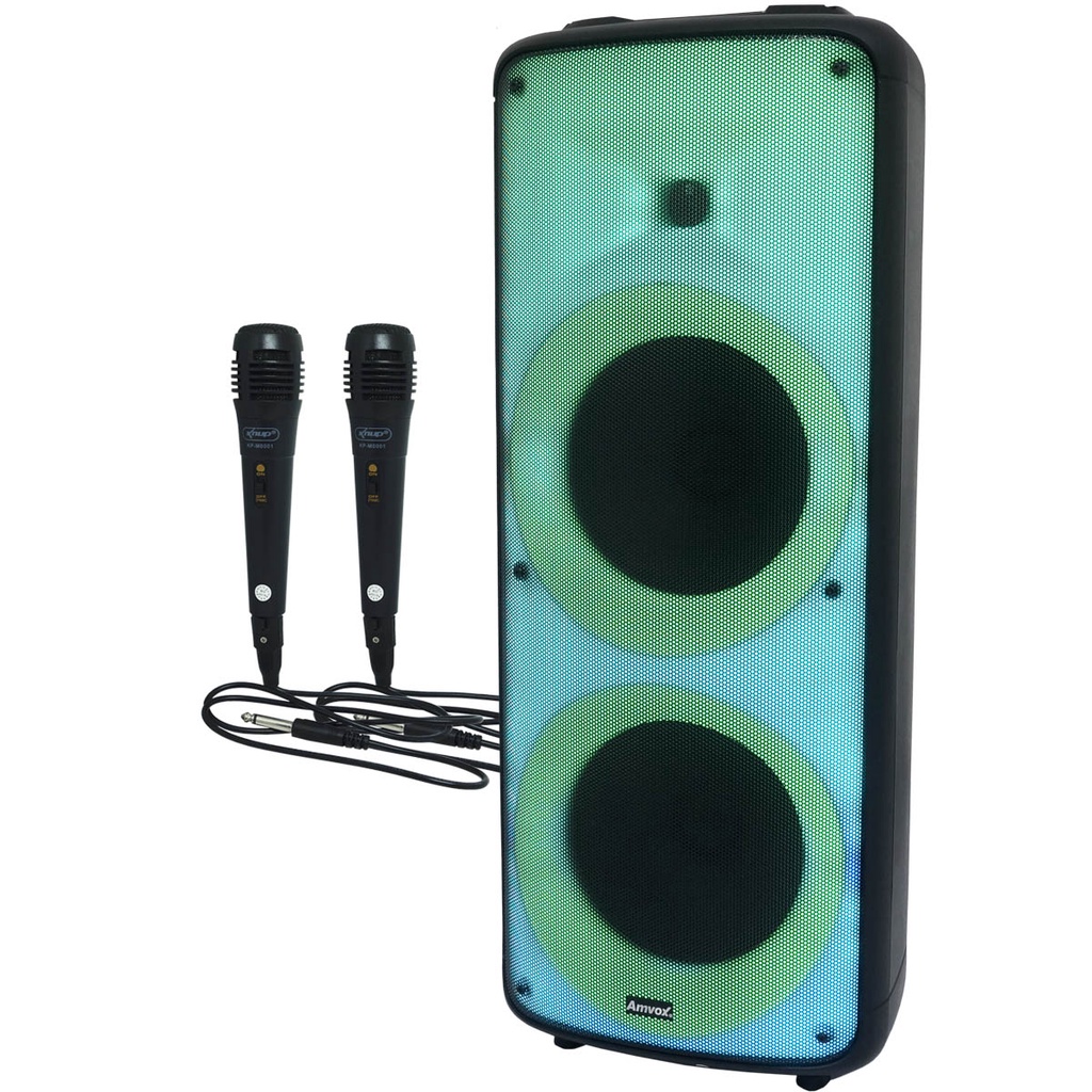 Caixa Som Amplificada Portátil Bluetooth 2000W Rms Show de Leds Amvox Aca 2000 Party Vox 2 Microfone