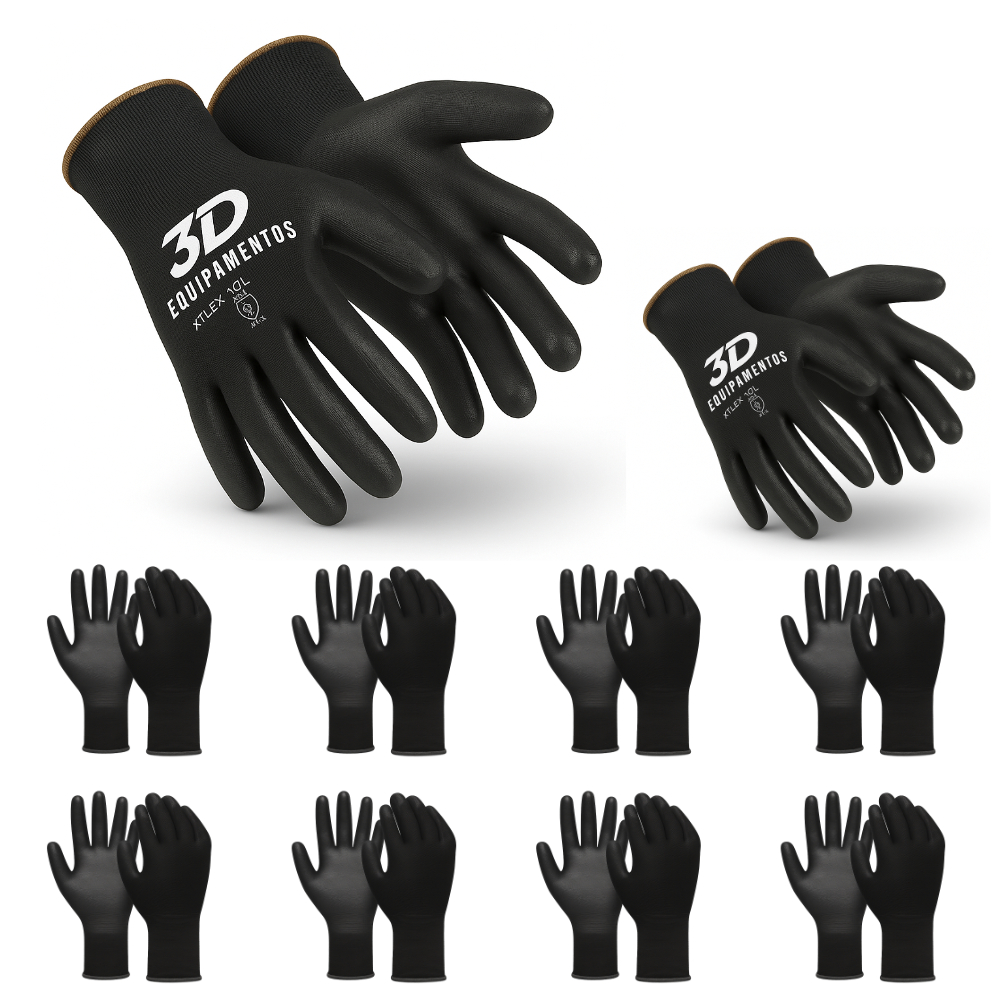 Kit 10 Pares de Luvas PU Epi Multitato Para Mecânico Montagem Manutencao Eletricista