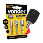 Jogo Adaptador Soquete Vonder para Parafusadeira Kit 3 Peças Cachimbo 1/4 3/8 1/2