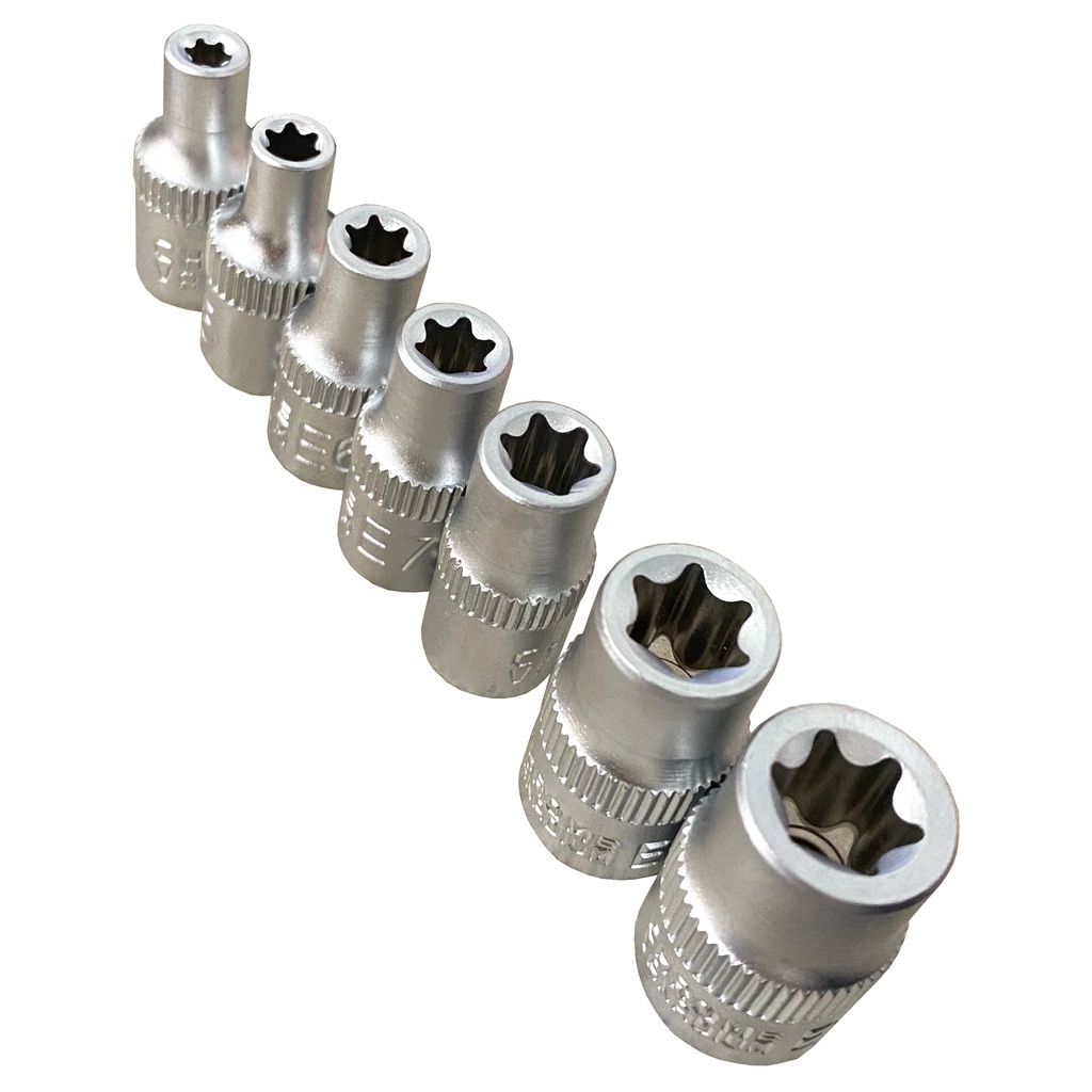 Kit Jogo Soquete Torx Femea Cr-v 1/4 E4 E5 E6 E7 E8 E10 E11 7 pçs