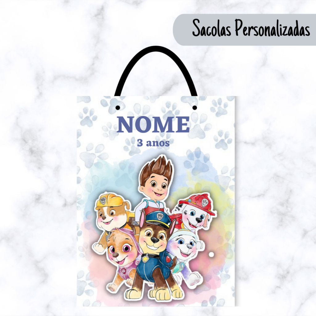 KIT SACOLINHAS PERSONALIZADAS TEMA PATRULHA CANINA AQUARELADO - PEQUENA - IDEAL PARA LEMBRANCINHAS DE ANIVERSÁRIO - 10 UNIDADES