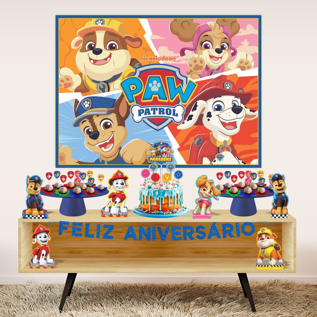 Kit Ouro Patrulha Canina Festa e Decoração Aniversário Infantil da Patrulha Canina Completa c/ 39 itens em EVA Painel de Parede + Enfeites de Mesa + Topo de Bolo