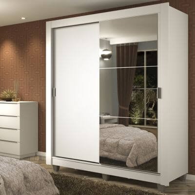Guarda Roupa Solteiro com Espelho 2 Portas de Correr 4 Gavetas Itália Yescasa Branco