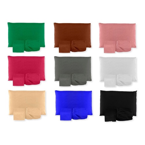 Jogo de Lençol Microfibra Liso Queen 3 Peças 1,98m x 1,58m x 30cm Com Elástico e Fronhas