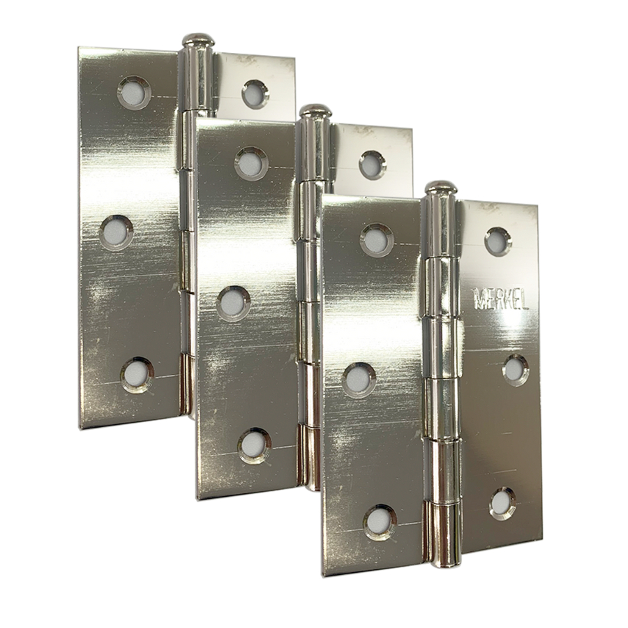 Jogo de Dobradiças Para Porta com 3 Merkel zincada cromada prateada 3.1/2