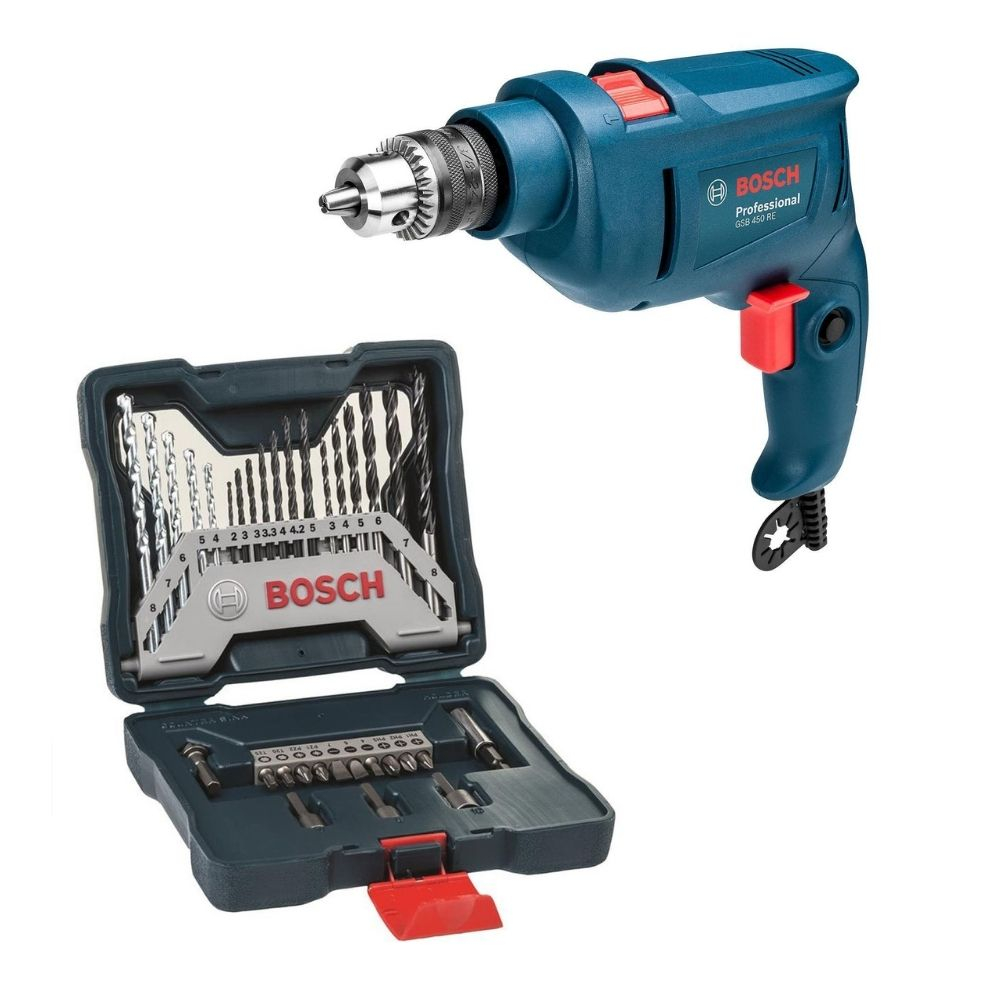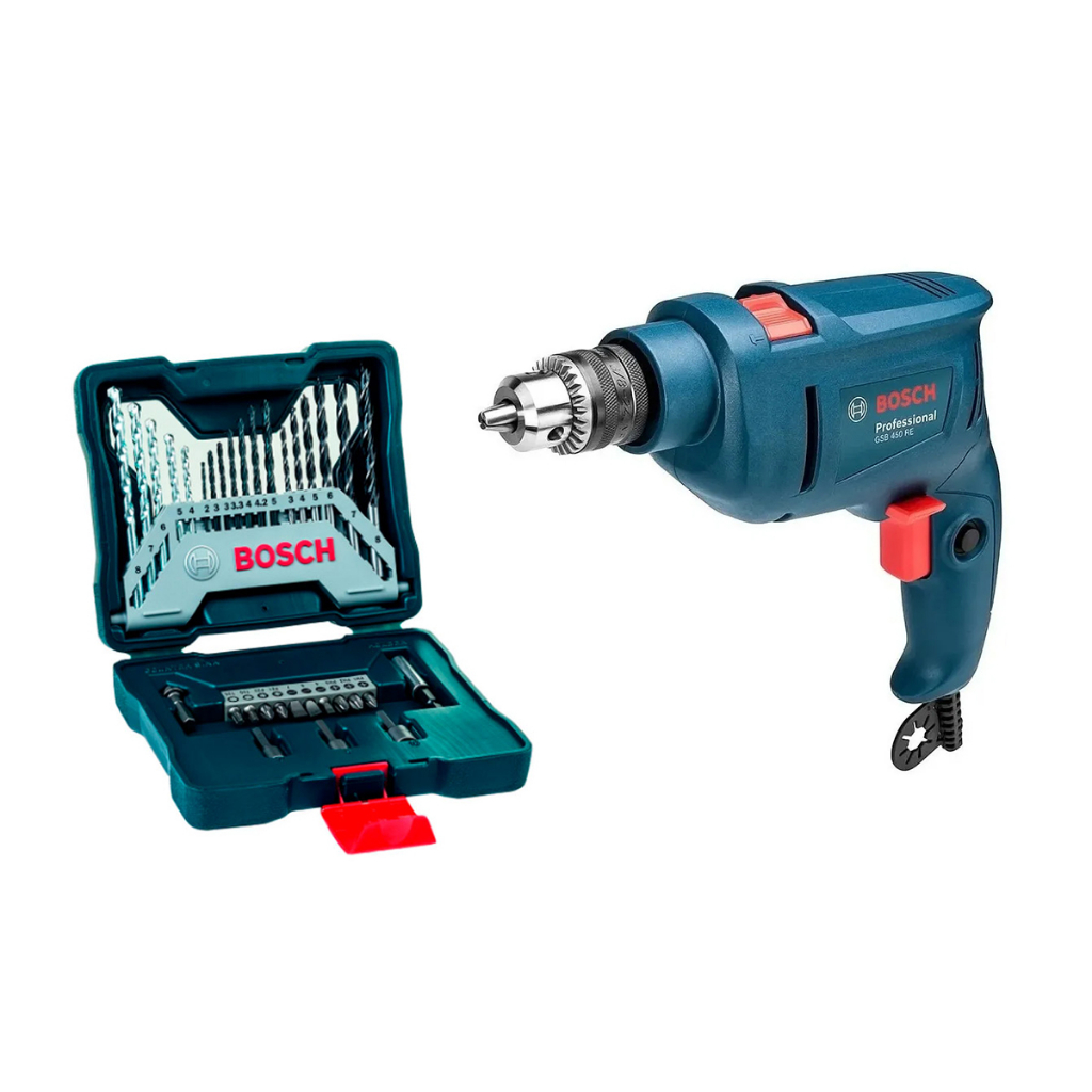 Furadeira De Impacto Bosch GSB 450 RE STD 220V 450W + Kit de Pontas e Brocas X-Line 33 Peças