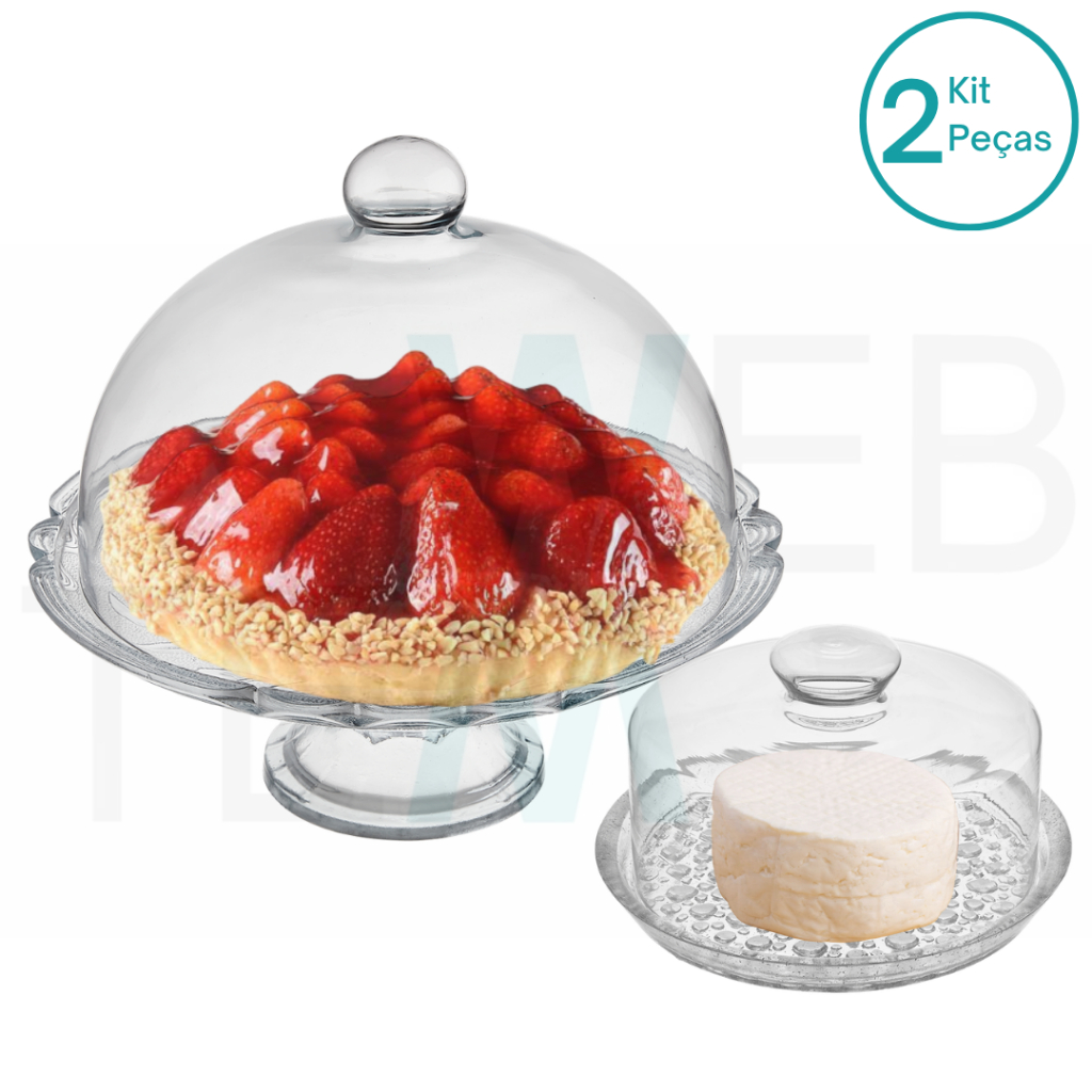 Kit Boleira com Pé Lírio Prato 32cm para Bolo e Queijeira Porta Queijos de Vidro Petit Poa Vitazza para Mesa Posta, Praticidade e Estilo Sustentável na Organização e Decoração
