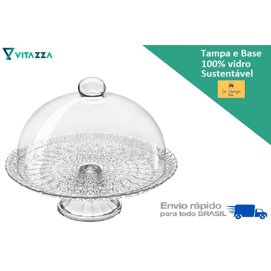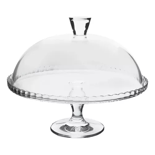 Boleira De Vidro Prato Para Bolo Com Pé E Tampa 32cm