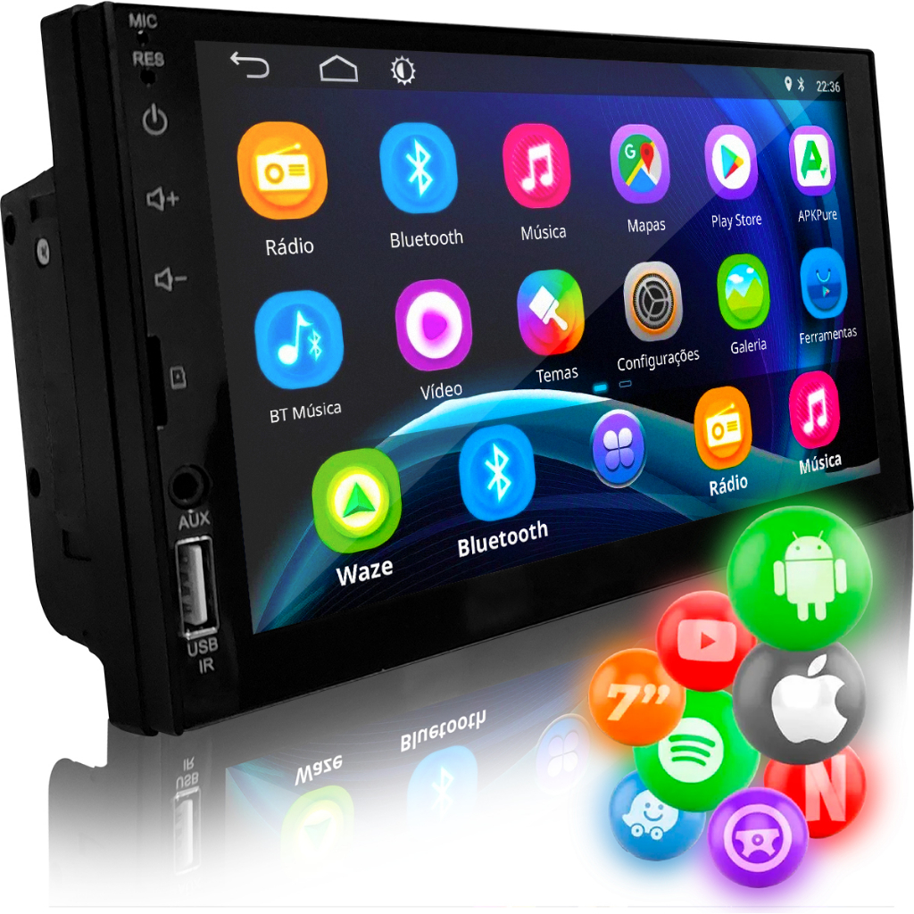 Central Multimídia Universal Mp5 Espelhamento Celular Padrão 1 e 2 Din Tela 7 polegadas Som Carro