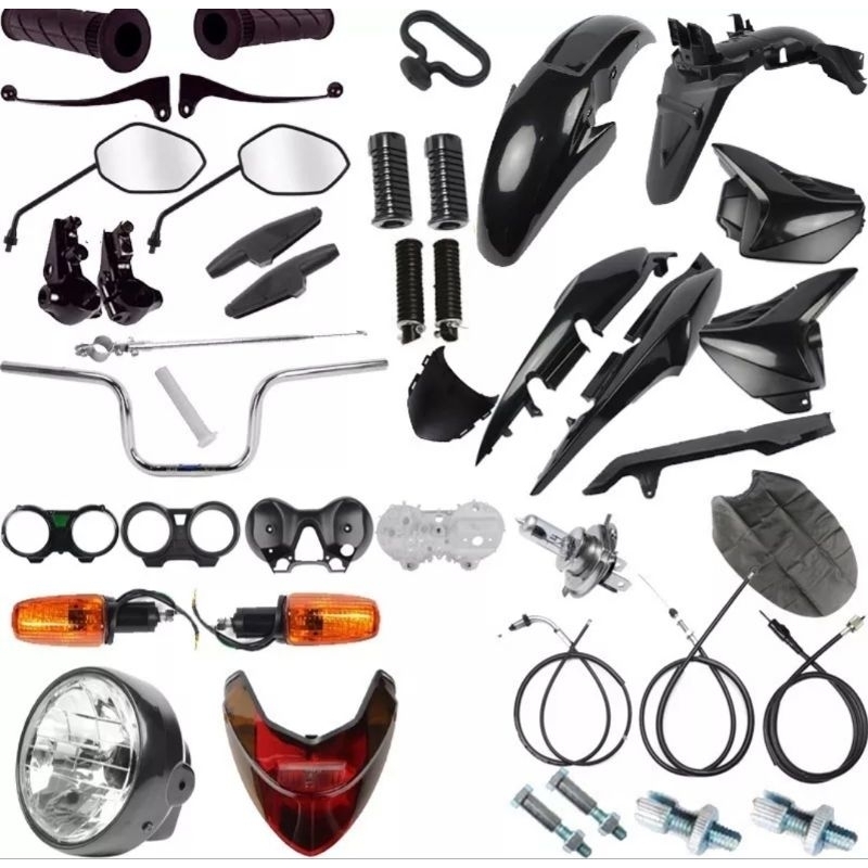 Kit Carenagem + Kit Farol Pisca titan fan 150 2009 2010 2011 2012 2013 Preto