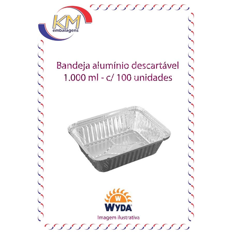 Bandeja alumínio descartável 1000 ml c/100 unid - Wyda - embalagem alimento, marmitex, delivery