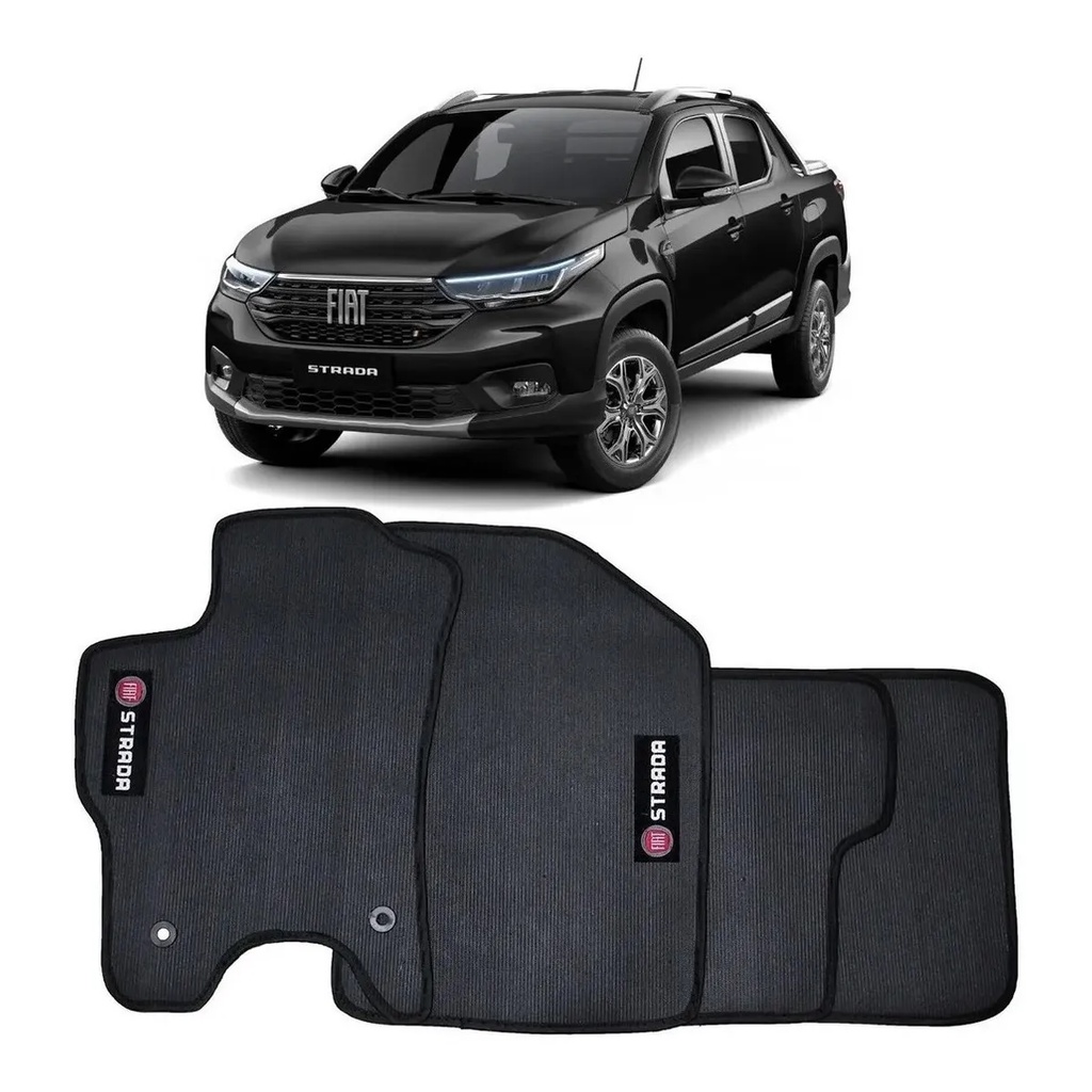 Jogo Tapete Borracha Pvc nova Fiat Strada cabine dupla 2020 até 2024 todos modelos lavável c/ 4 pçs