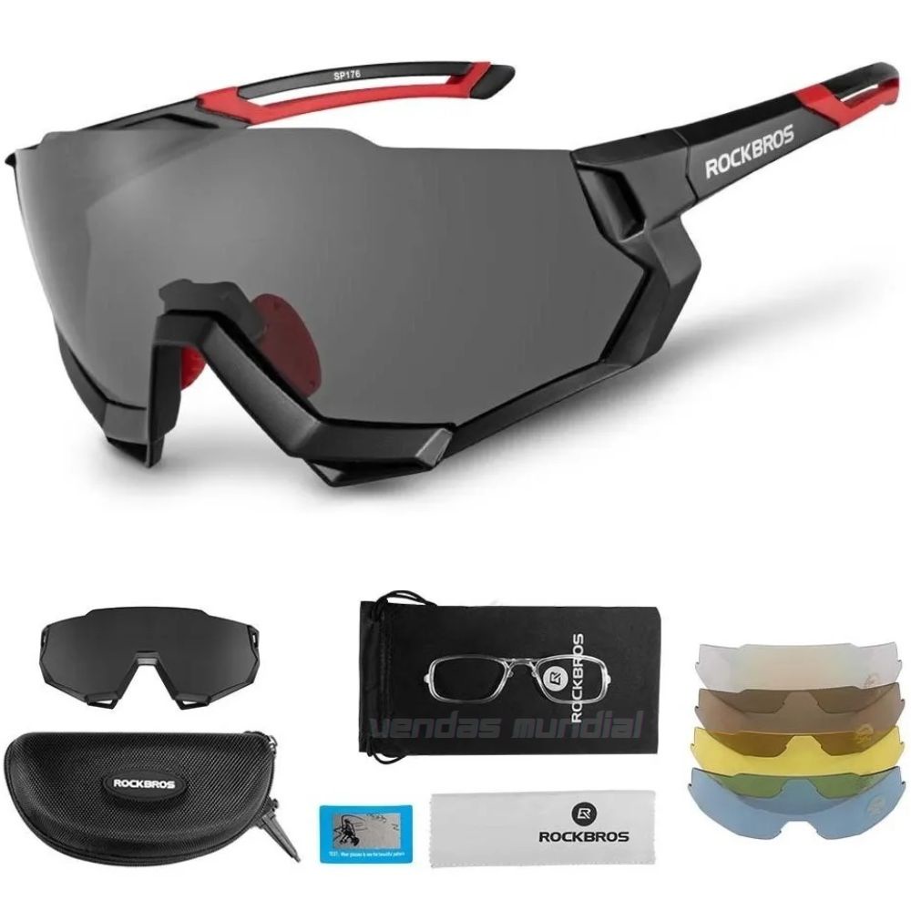 Óculos Ciclismo Ciclista Esportivo Masculino Feminino Rockbros Bike Proteção Uv 400 Com 5 Lentes