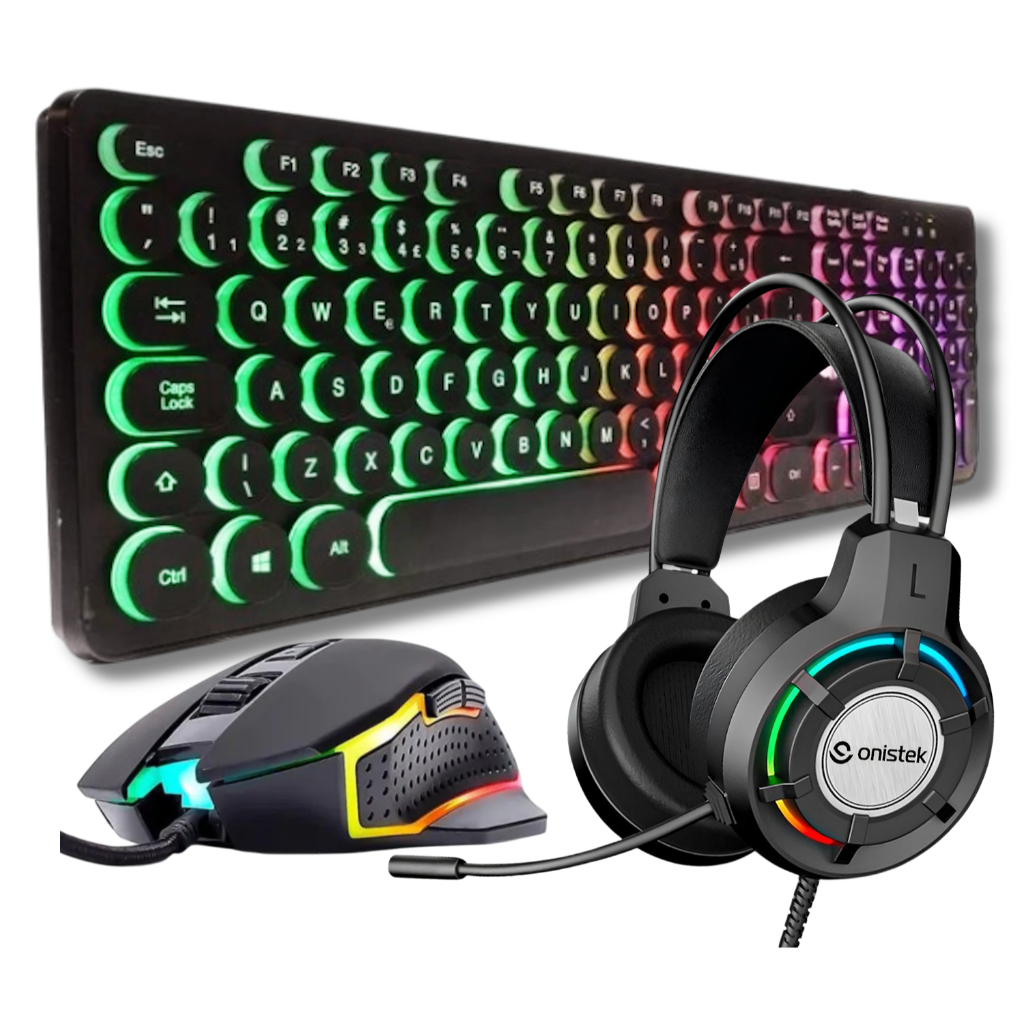 Kit Gamer Teclado Redondo Tipo Chocolate, Mouse 4800 Dpi e Headset Fone Microfone RGB Pc Notebook