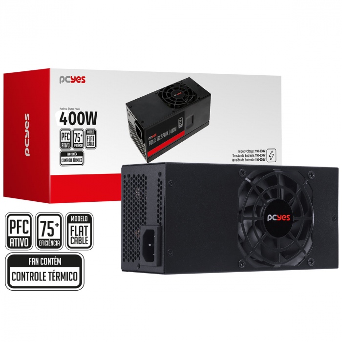 Fonte Para Gabinete Slim Pcyes Spark Sfx 400W Real 75+ Pfc Ativo - Spkp400mbpt