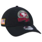 BONE 9FORTY SAN FRANCISCO 49ERS SALUTE TO SERVICE 2022 TRUCKER ABA CURVA PRETO NEW ERA