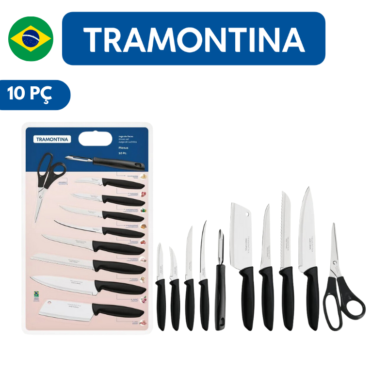 Jogo de Facas Tramontina Cozinha Plenus Aço Inox Kit 10 Peças Conjunto Completo