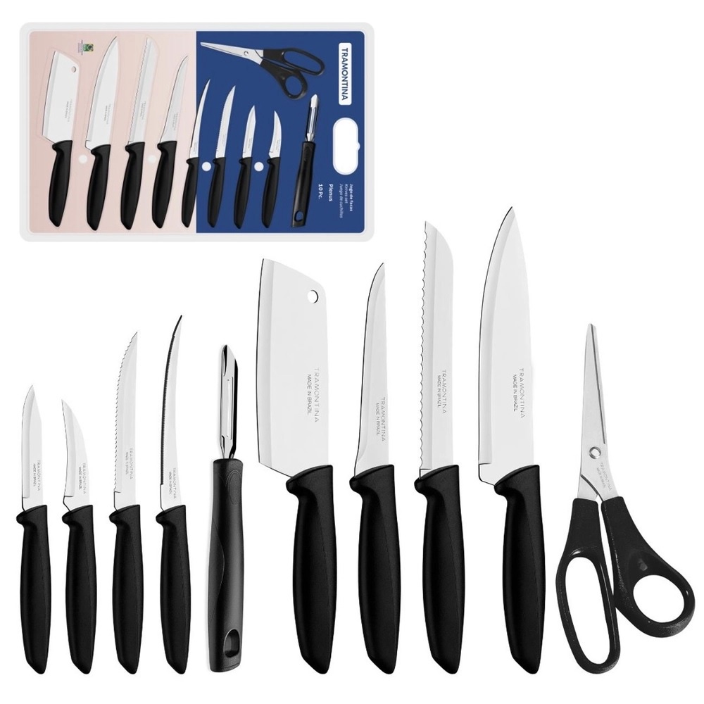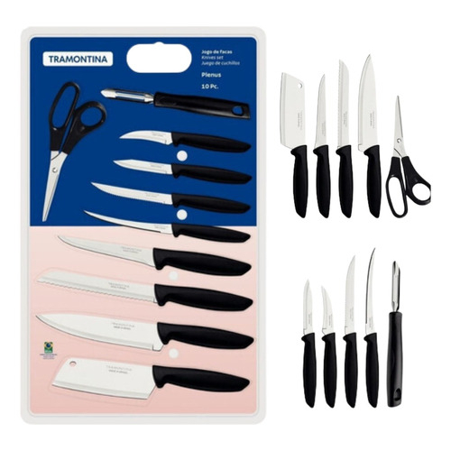 Jogo de Facas Tramontina Cozinha Plenus Aço Inox Kit 10 Peças Conjunto Completo