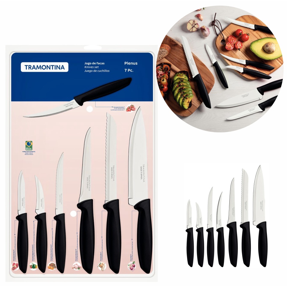 Kit Jogo De Facas Com Lâminas De Aço Inox Plenus Preto 7 Pçs Tramontina