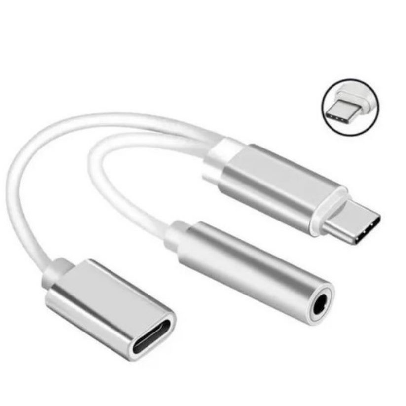Cabo adaptador duplo tipo-c carregador + fone 2 em 1 dual, Para usb-c, Fone Ouvido P2,P3 3.5mm