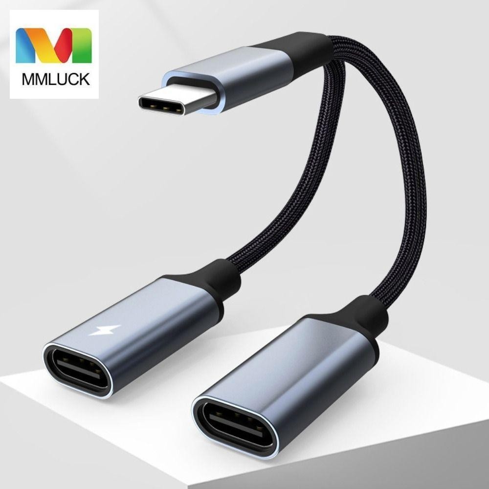 MMLUCK 2 Em 1 USB C Para Cabo De Áudio Auxiliar , Adaptador OTG Dual Type Duplo Tipo , Durável Ouvir Música Telefone/Fon