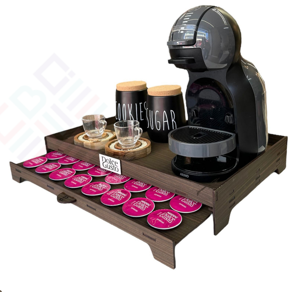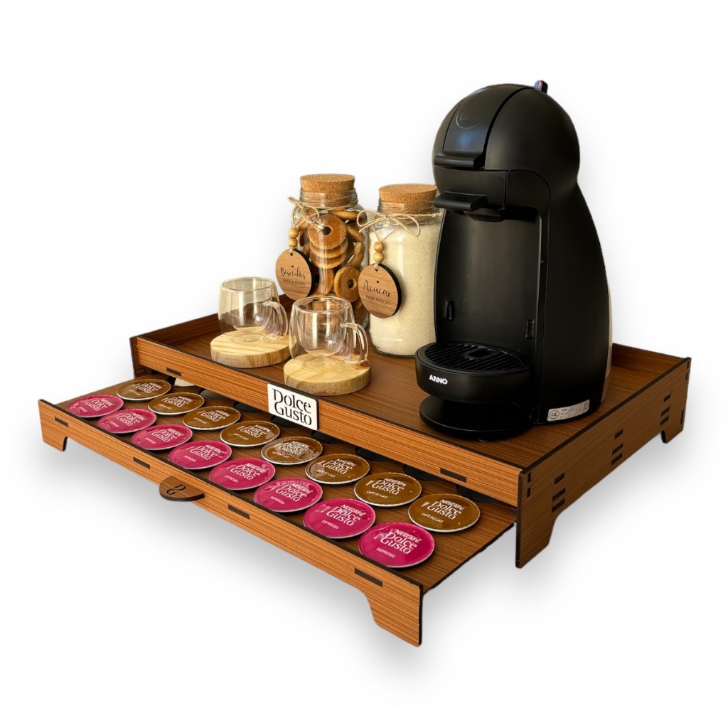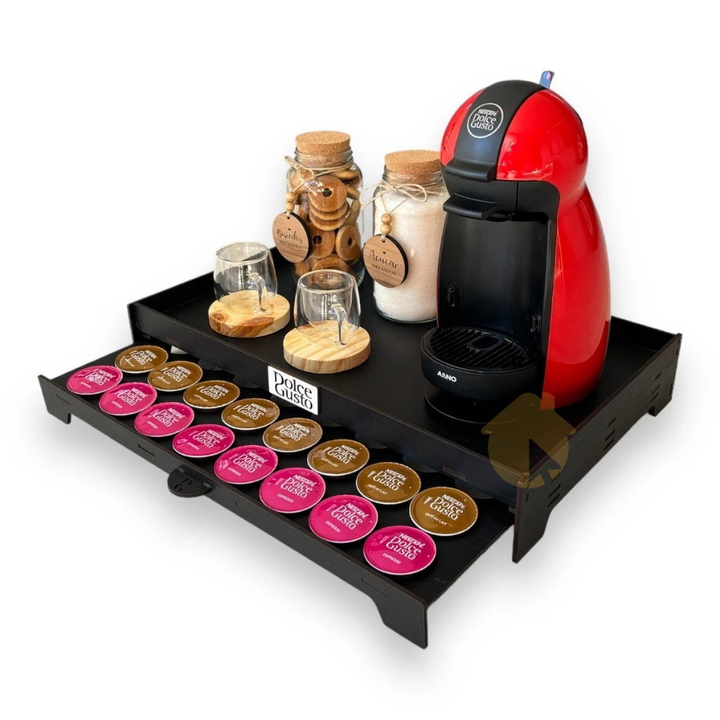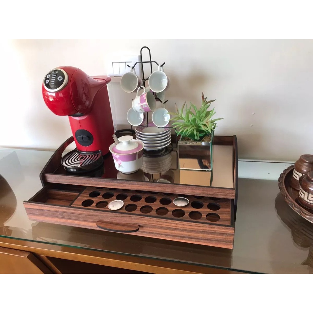 Bandeja porta capsulas cantinho do café com gaveta decorativo dolce gusto grande mdf organizador apoio servir chá cafeteira