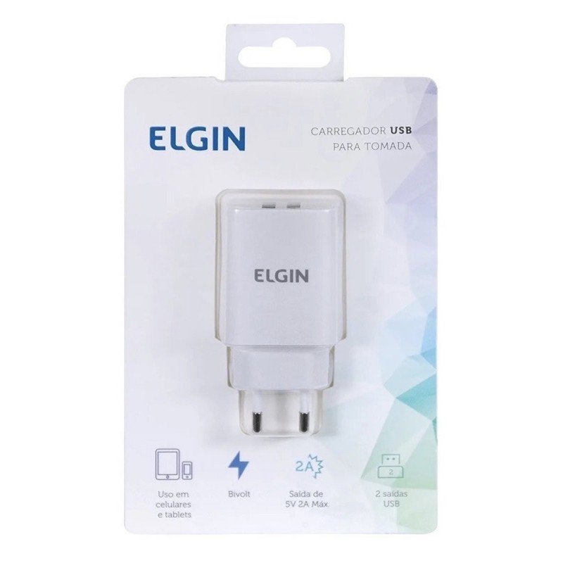 Carregador De Tomada Elgin Com 2 Saida Usb 5w 2.1a, Bivolt