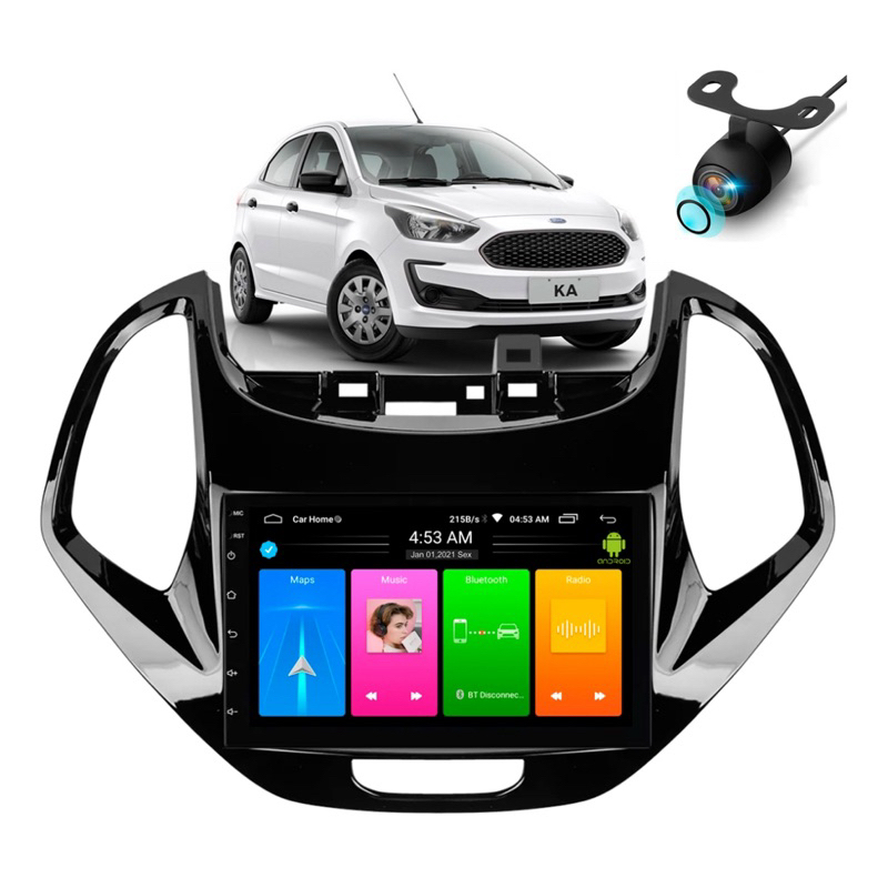 Kit Multimidia Android CarPlay Ford Ka+ Ka 2014 2015 2016 2017 2018 2019 2020 + Moldura + Câmera De Ré