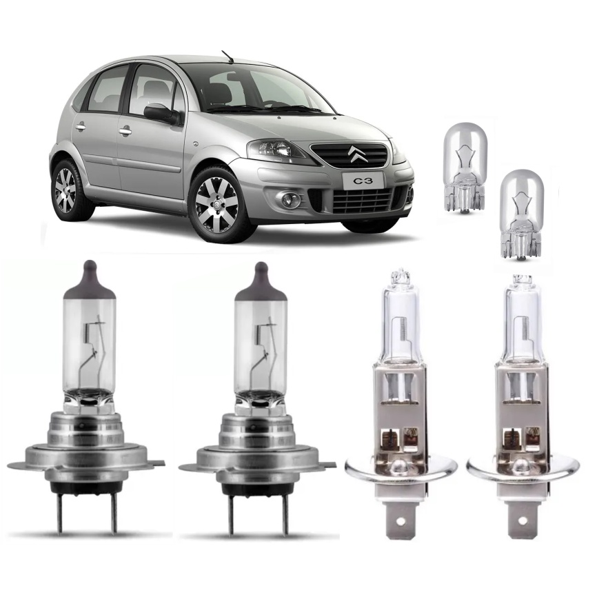Kit Lâmpadas Farol Citroën C3 2003 2004 2005 2006 2007 2008 2009 2010 2011 2012 103 2014 2015 2016 2017