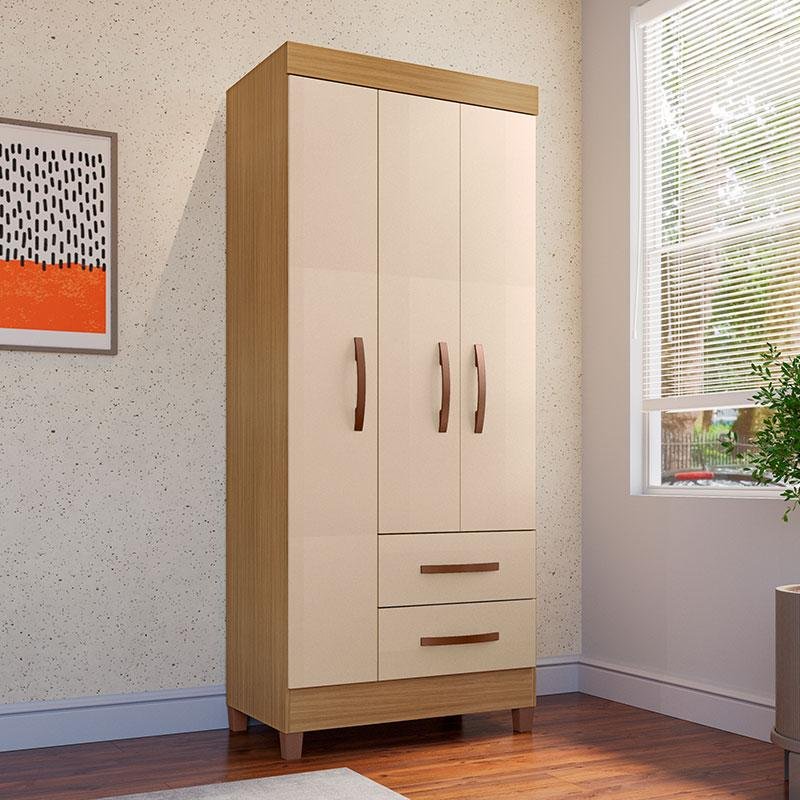 Guarda Roupa Solteiro Ambiente Mogi 3 Portas Teka Champagne - Incorplac