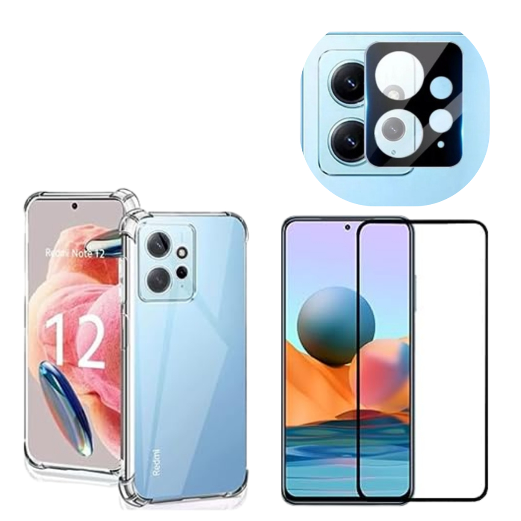Combo Xiaomi Redmi Note 12 4G Película De Vidro Full 9D + Capinha Transparente + Película Para Câmera Proteção Completa