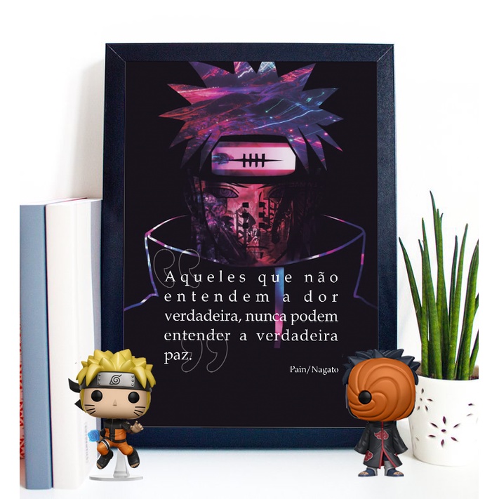 Quadro decorativo a4 frases Pain Nagato naruto akatsuki itachi anime animes com moldura 30x21cm 300x210mm decoração quadrinhos
