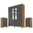 Kit Guarda Roupa Casal Porto Belo 6 Portas 2 Gavetas com Espelho e 2 Cômoda 5 Gavetas I01 Carvalho Grafite Clique Chique
